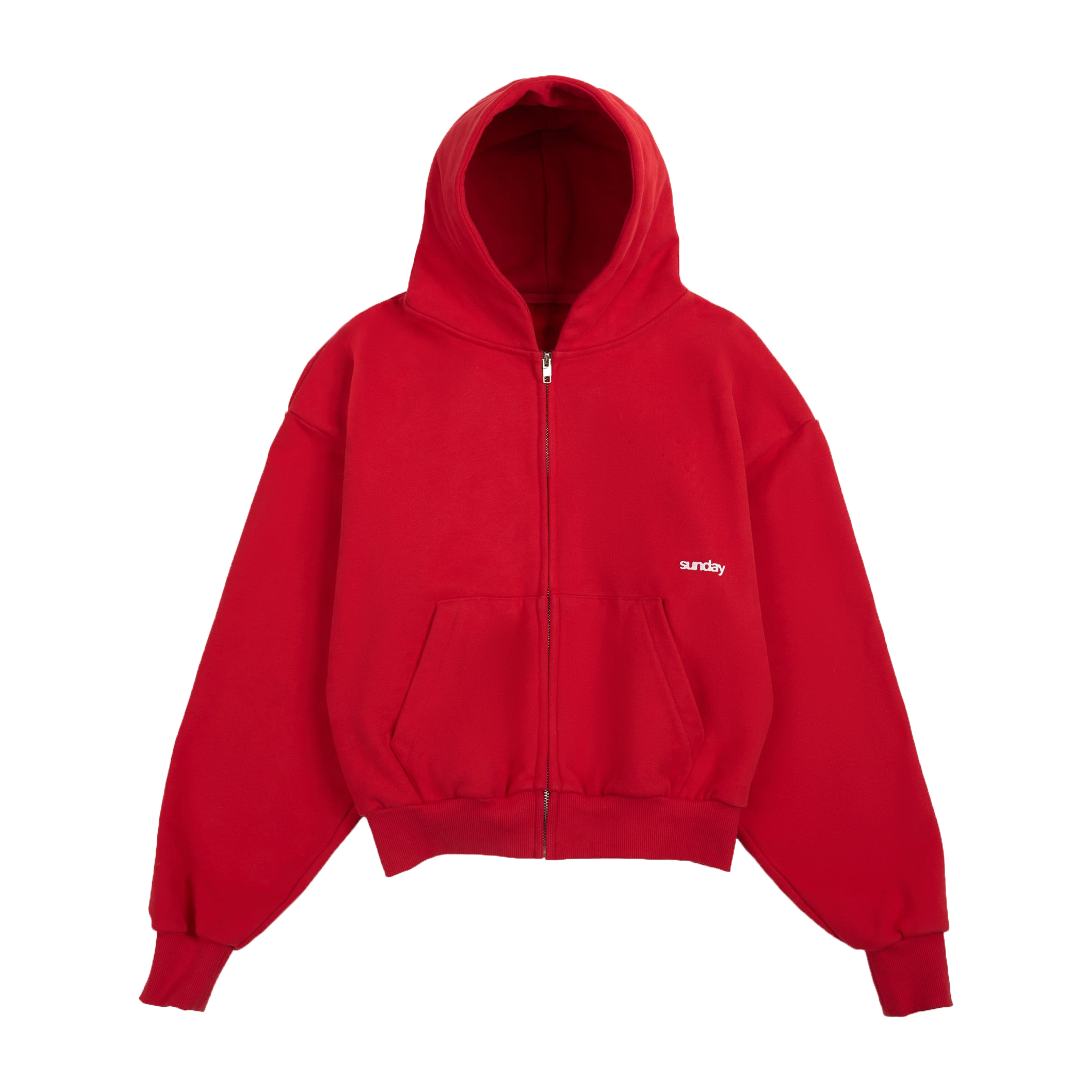 Enhance your daily essentials with the heavyweight script Sunday zip-up hoodie in red, crafted to offer superior comfort and a distinctive streetwear aesthetic. Made from ultra-dense 485GSM brushed fleece, it ensures excellent warmth, structure, and a luxurious feel. The fabric comprises a 75% cotton and 25% polyester blend, ensuring durability and softness. Featuring a spacious, oversized, boxy fit with balloon sleeves, it creates a bold, contemporary silhouette. The Sunday hoodie incorporates a ribbed hem and cuffs, along with screen-printed artwork, rendering it suitable for effortless layering or standalone wear.